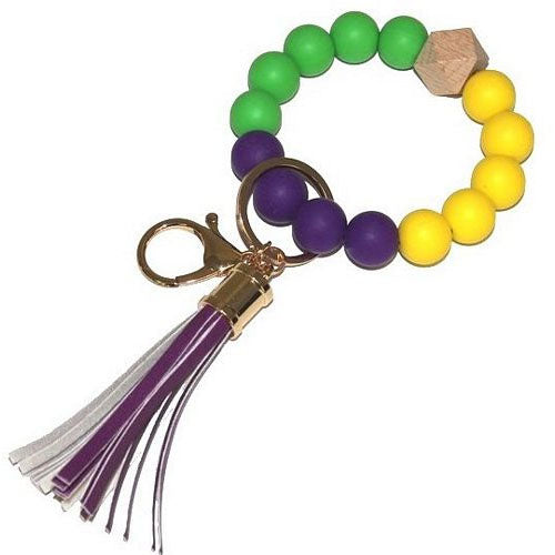 Mardi Gras Keychain W/ Beads & Tassel Bracelet