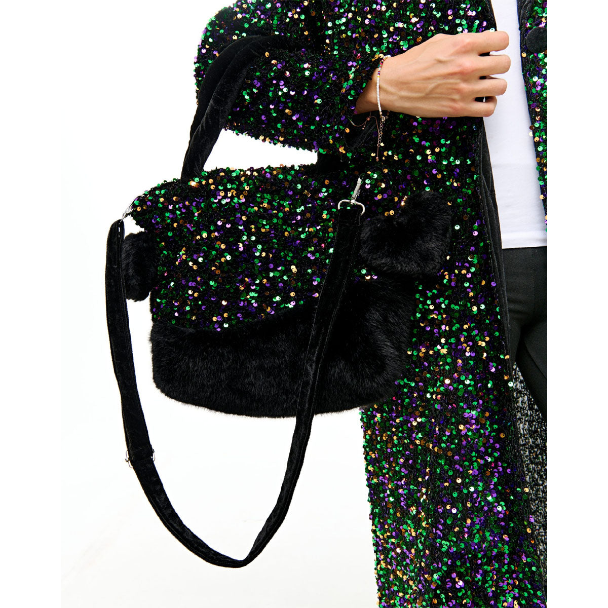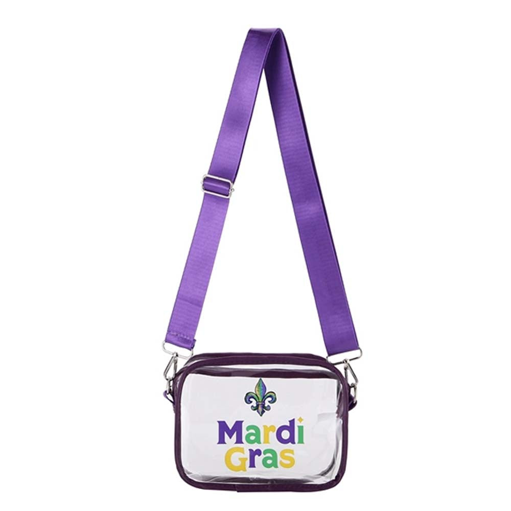 Ladies Clear Faux Leather Mardi Gras Crossbody Handbag