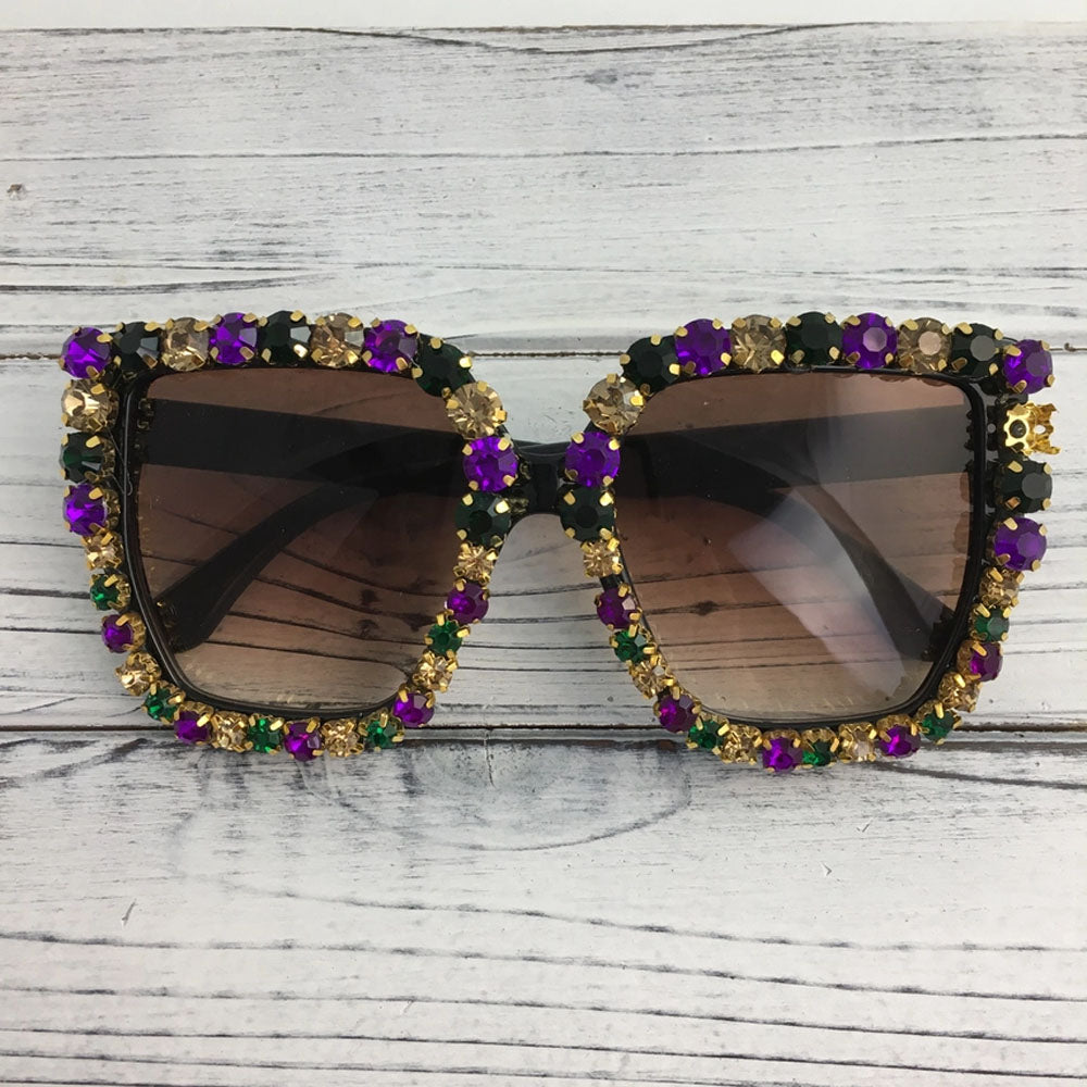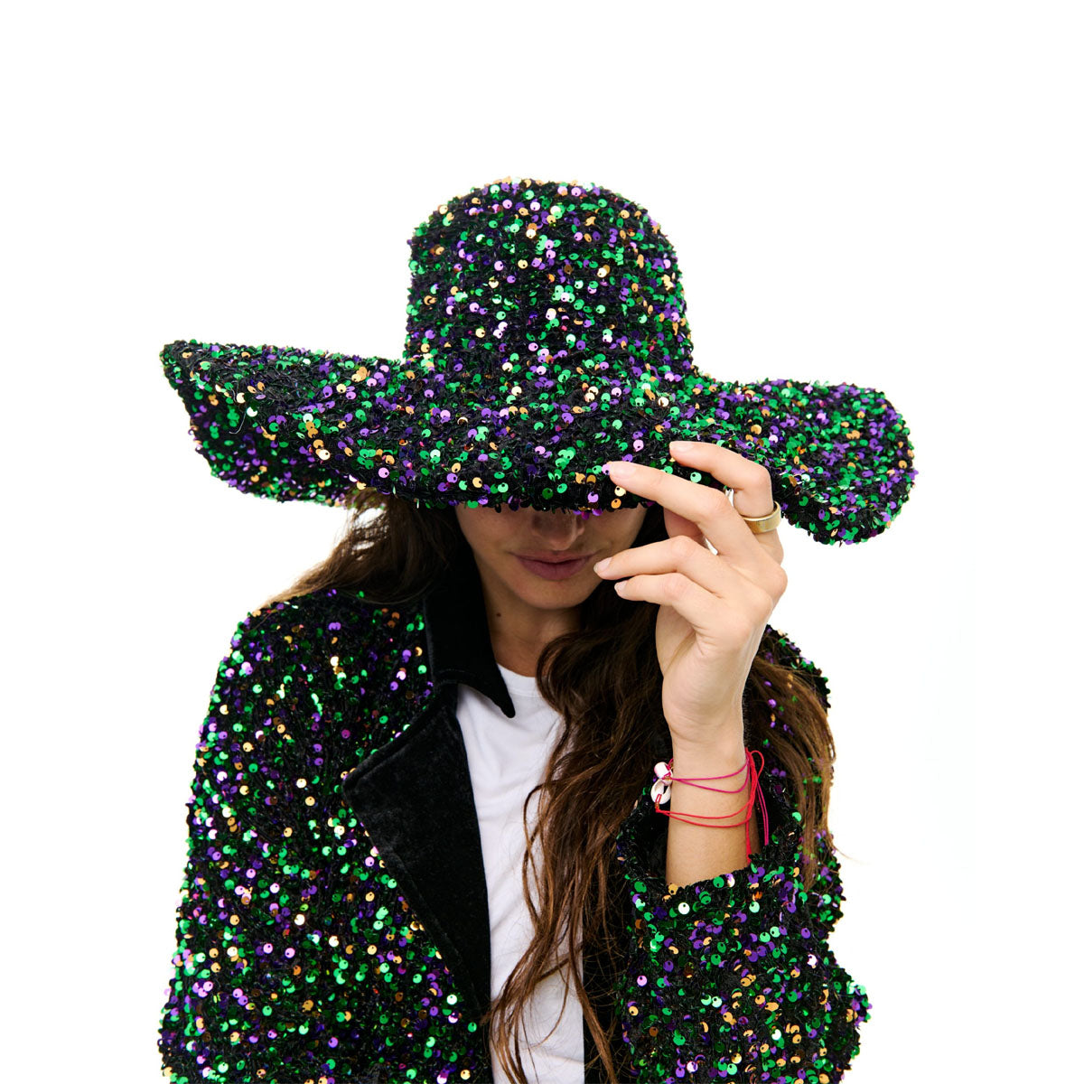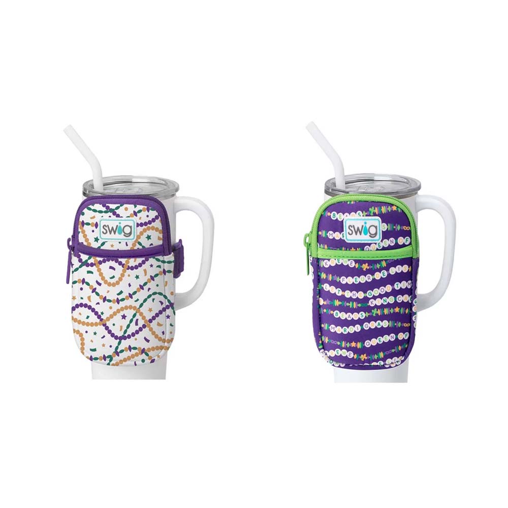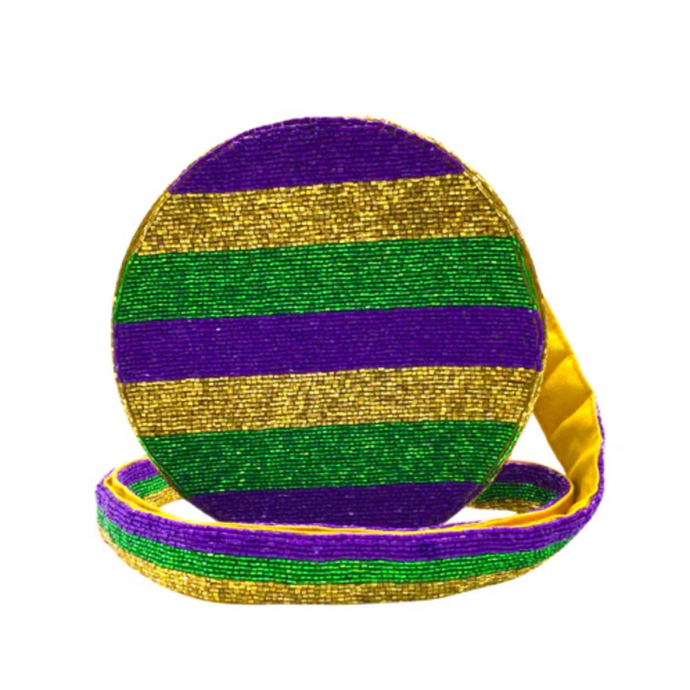 Purple, Green, and Gold Circle Mardi Gras Bead Bag with Strap