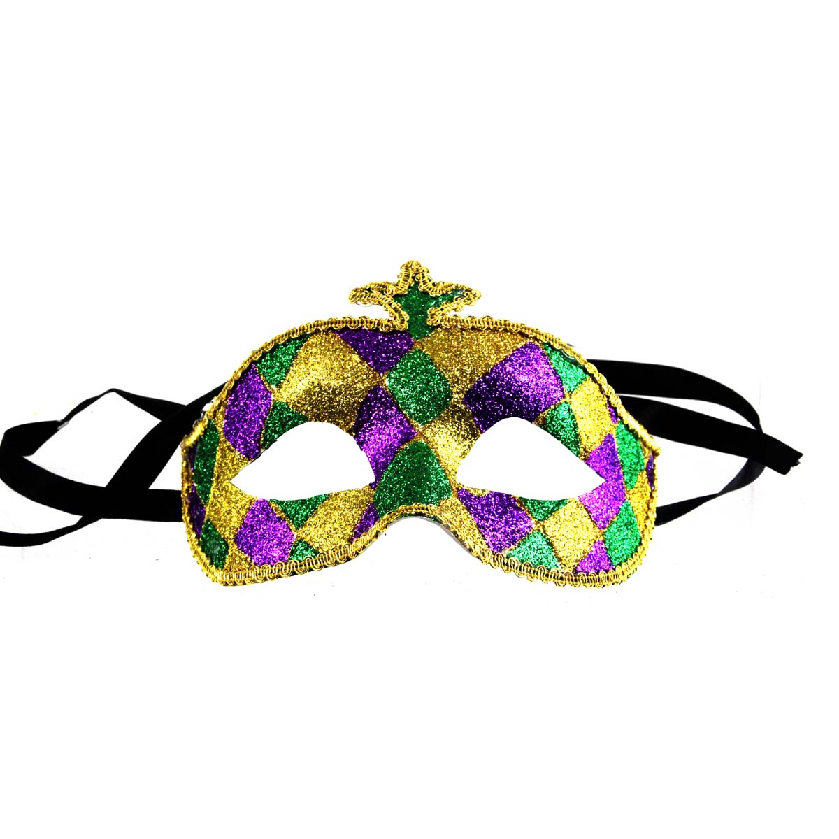 Mardi Gras Harlequin Mask, Purple Green Gold
