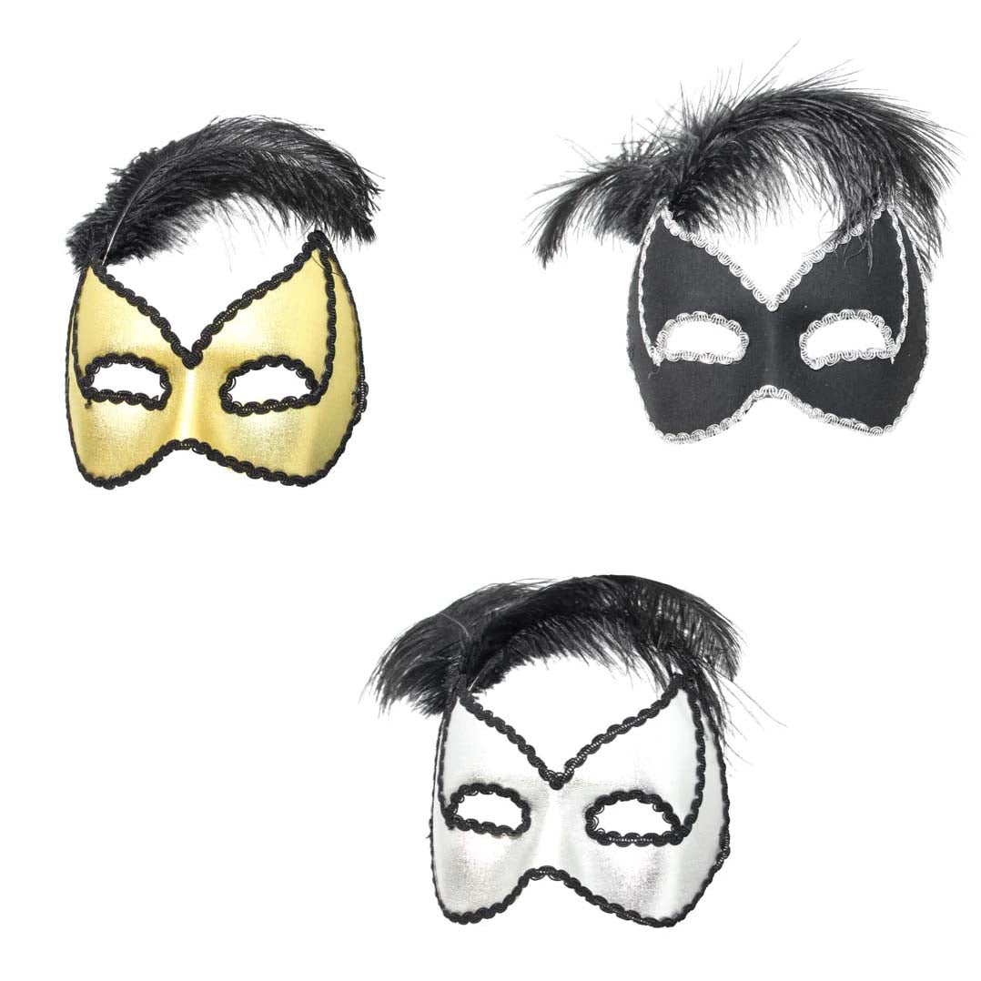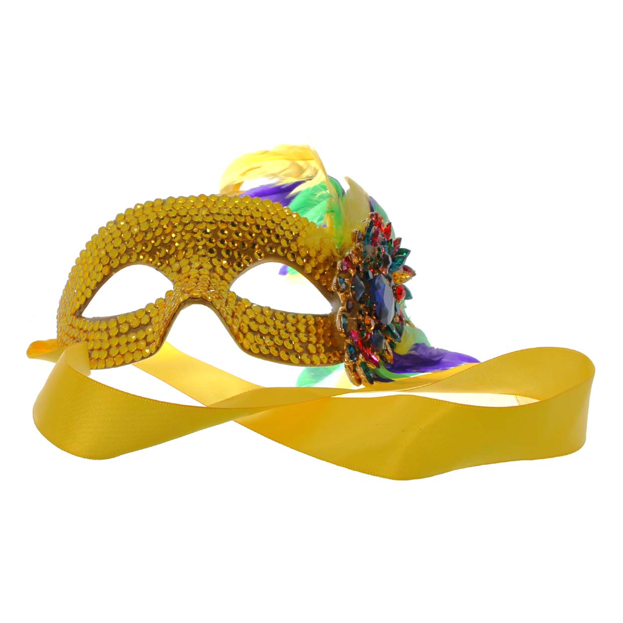 Oversized Gold Jewelled Feather Mask w/Multicolored Jewel