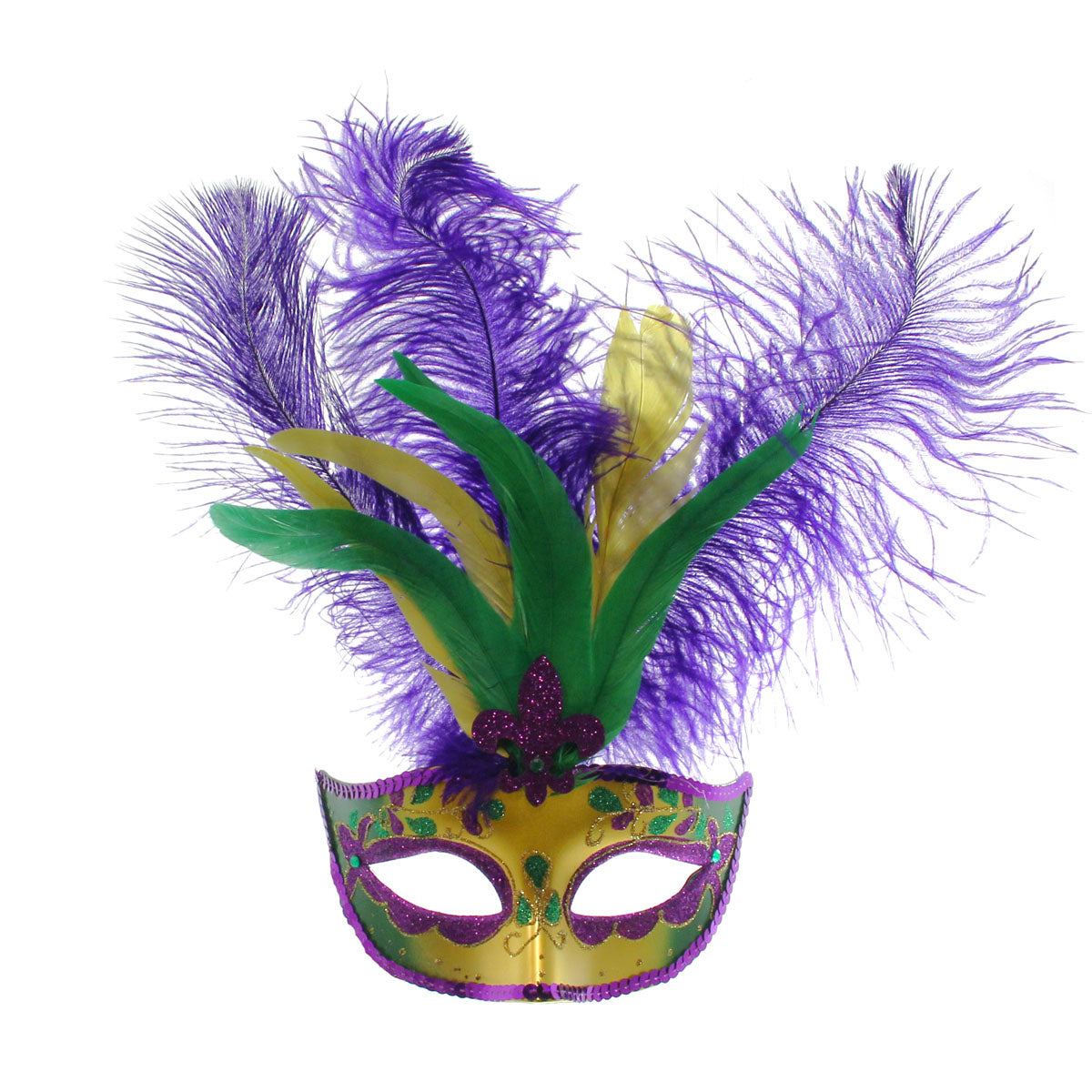 Mardi Gras Feather Mask w/Purple Fleur de Lis