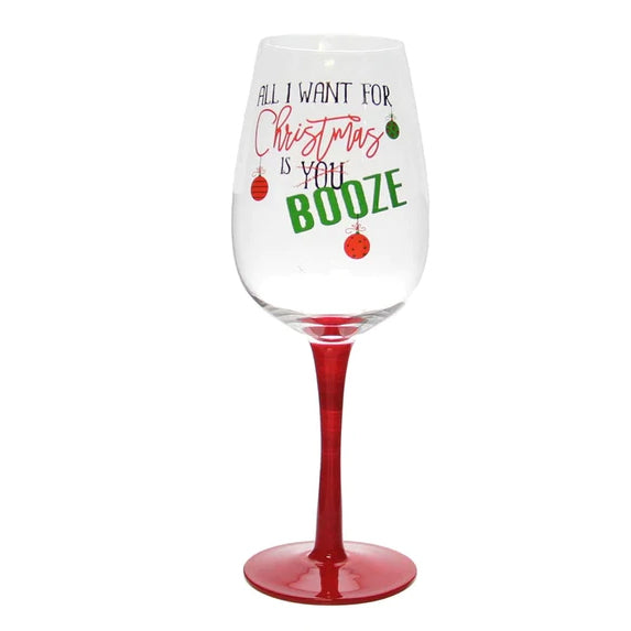 "All I Want For Christmas is Booze" Humorous Wine Glass