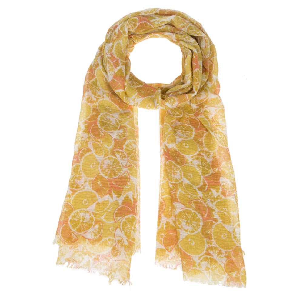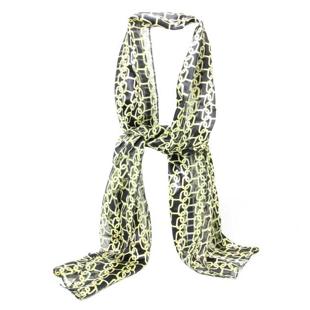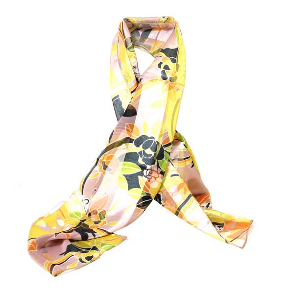 Long Scarf 60" x 13" Flowers Yellow Orange Satin/Sheer