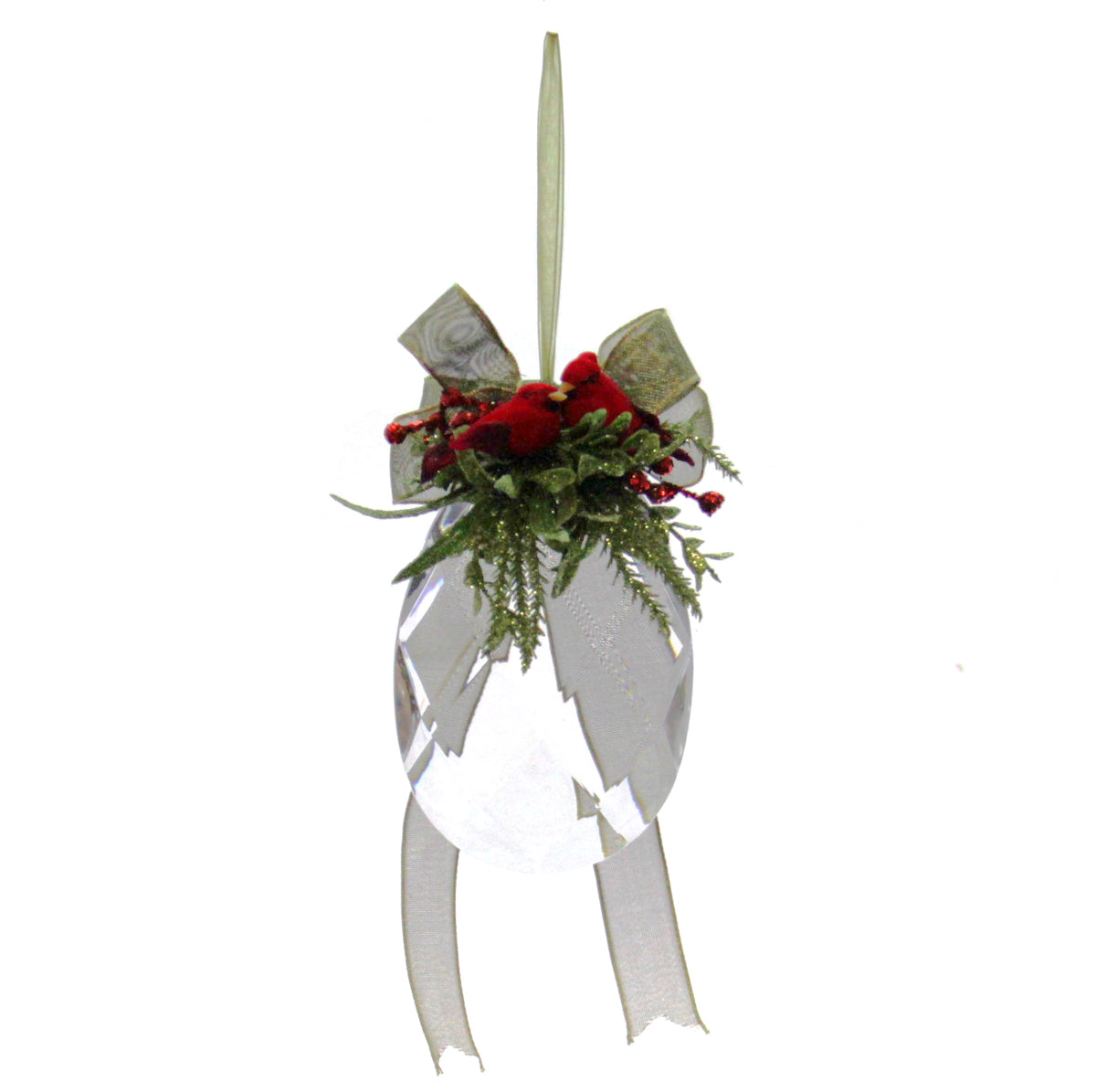 Kissing Krystal Mistletoe Cardinal Ornament Tear Drop
