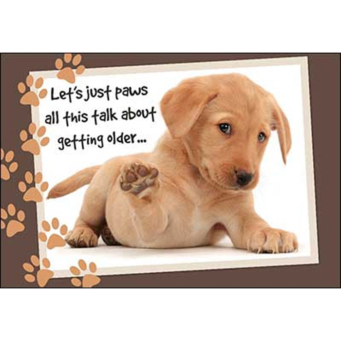 Birthday Card: "Let's just paws all this talk..." w/puppy