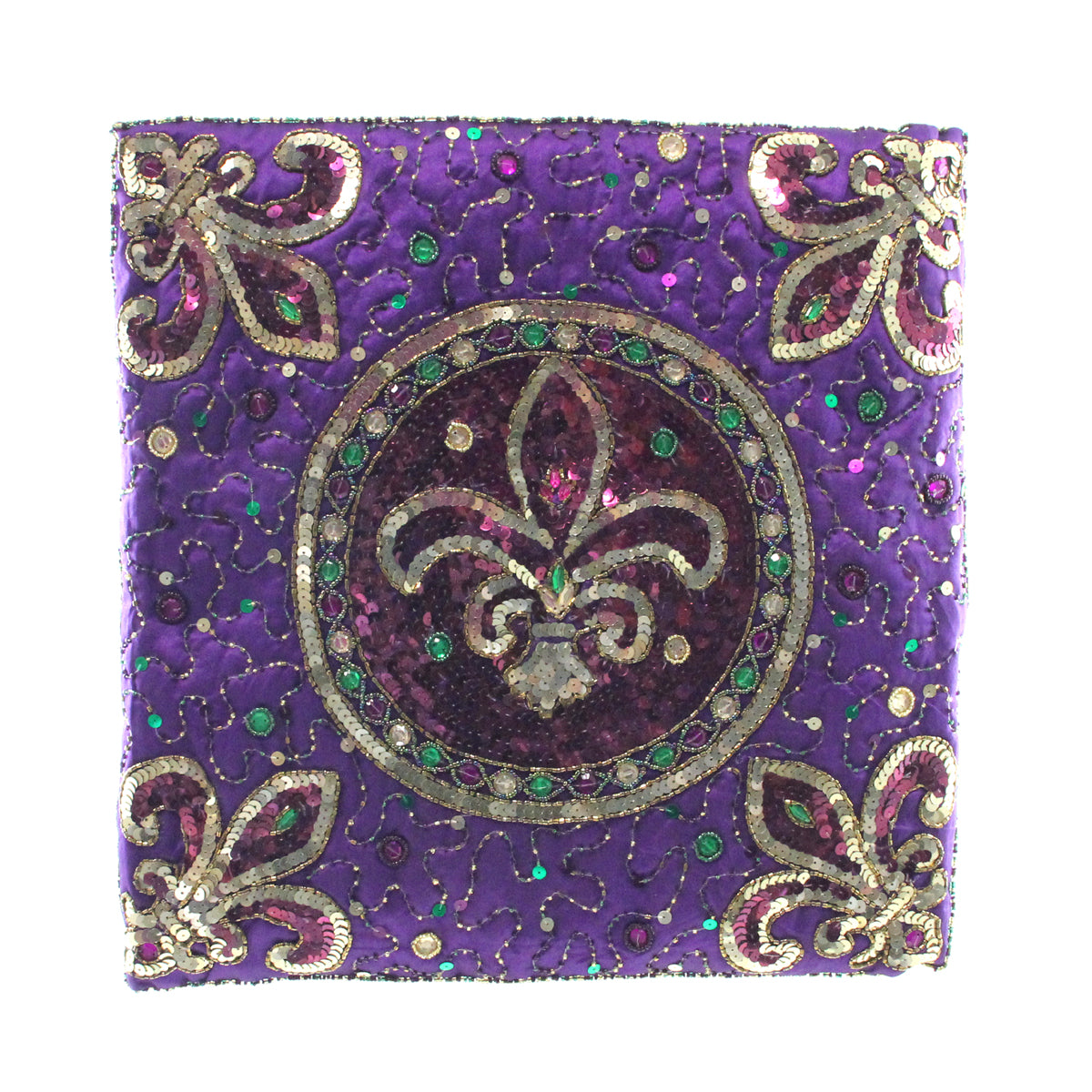 Mardi Gras Fleur De Lis Pillow 14" X 14" Purple