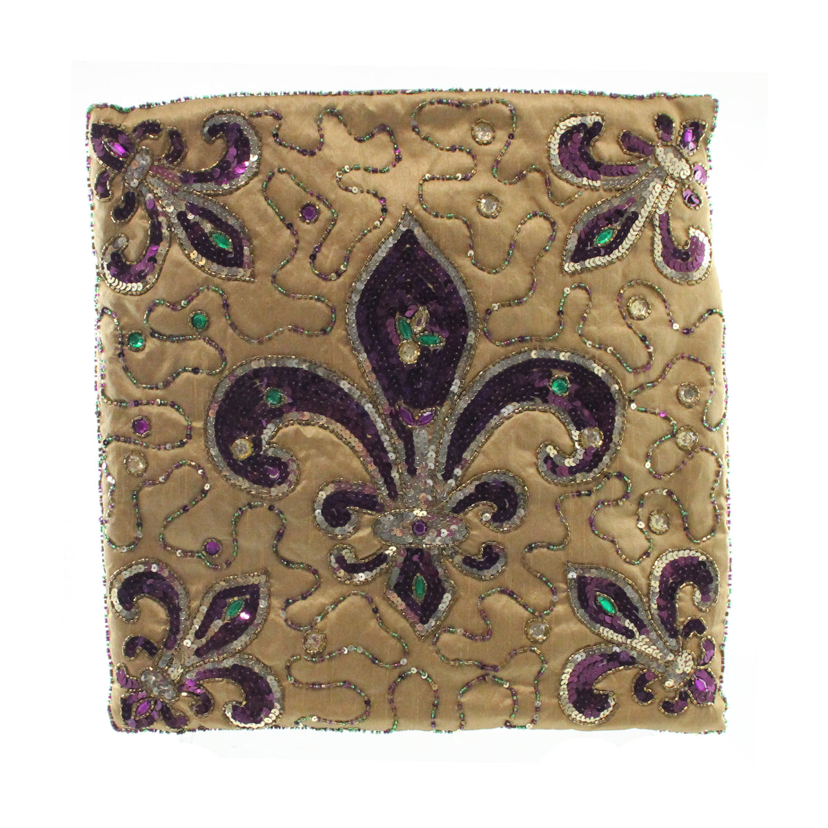 Mardi Gras Fleur De Lis Pillow 14" X 14" Gold
