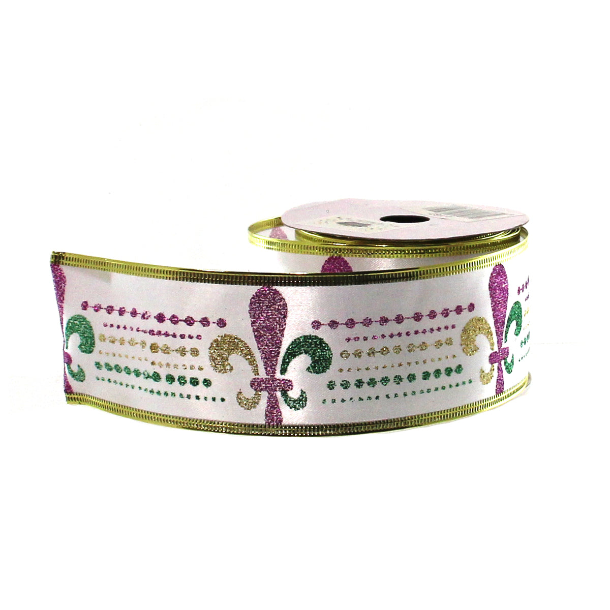 Mardi Gras Fleur De Lis with Beads Ribbon 2.5"x10yd