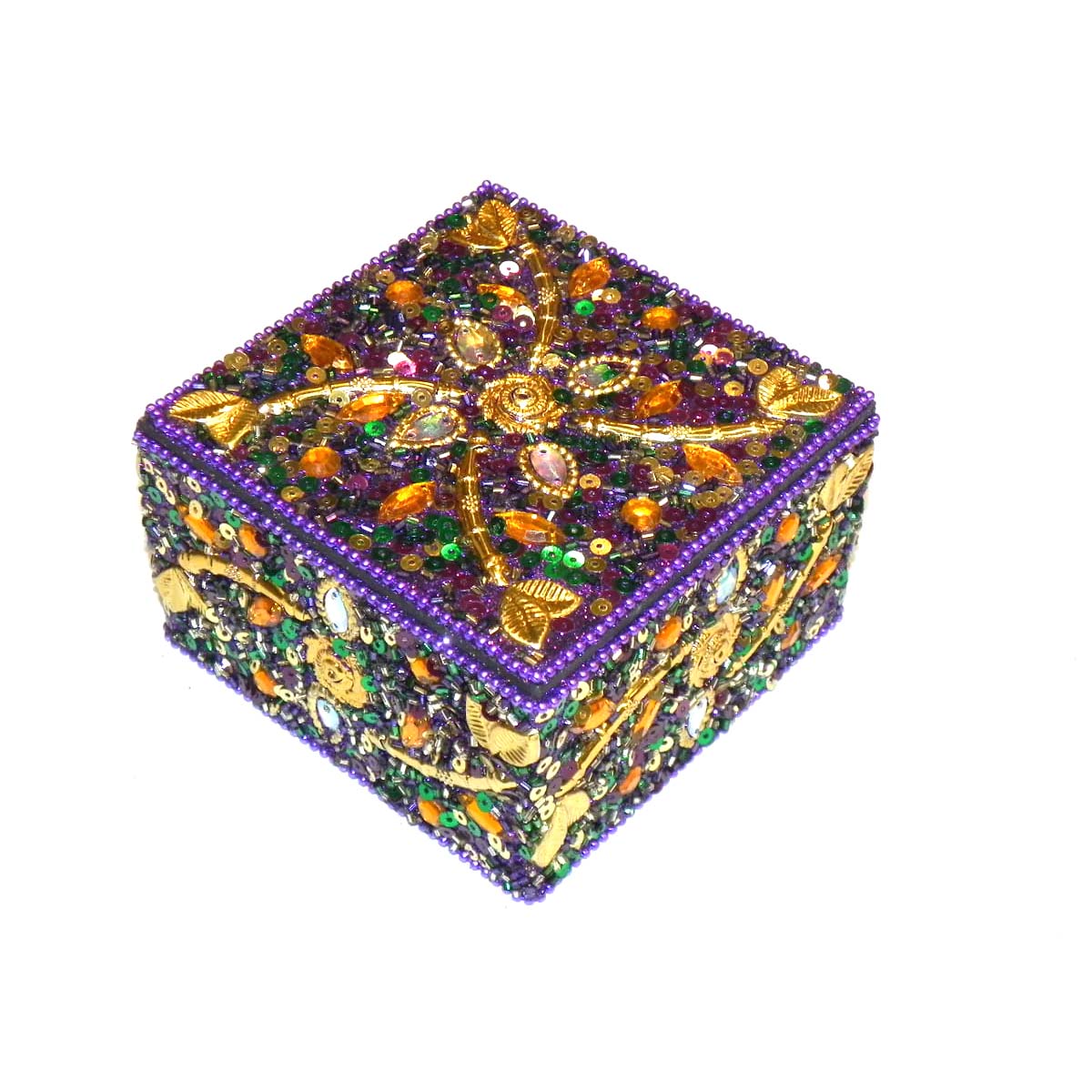 Pretty in Purple Leaf Burst Box, Mardi Gras, 4"X6"