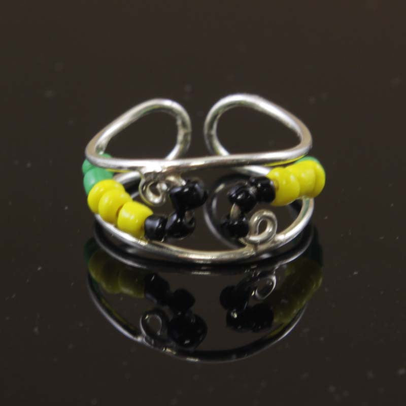 Sterling Silver Seed Beads Black, Yellow, Green Toe Ring