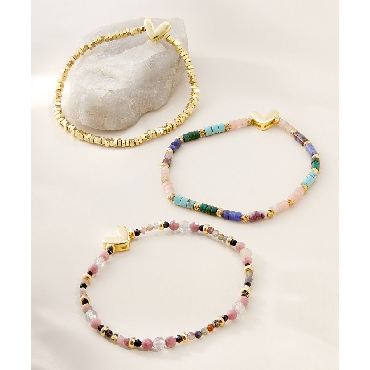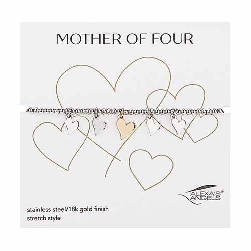 Many Hearts Bracelet; Mother of Four; STRETCH 7"L