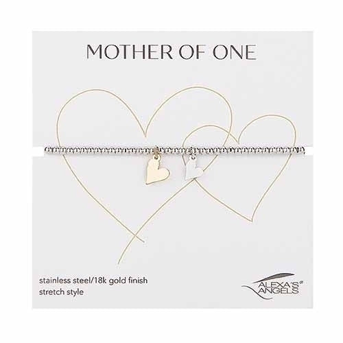 Many Hearts One Family Bracelet, mother of one; STRETCH 7"L