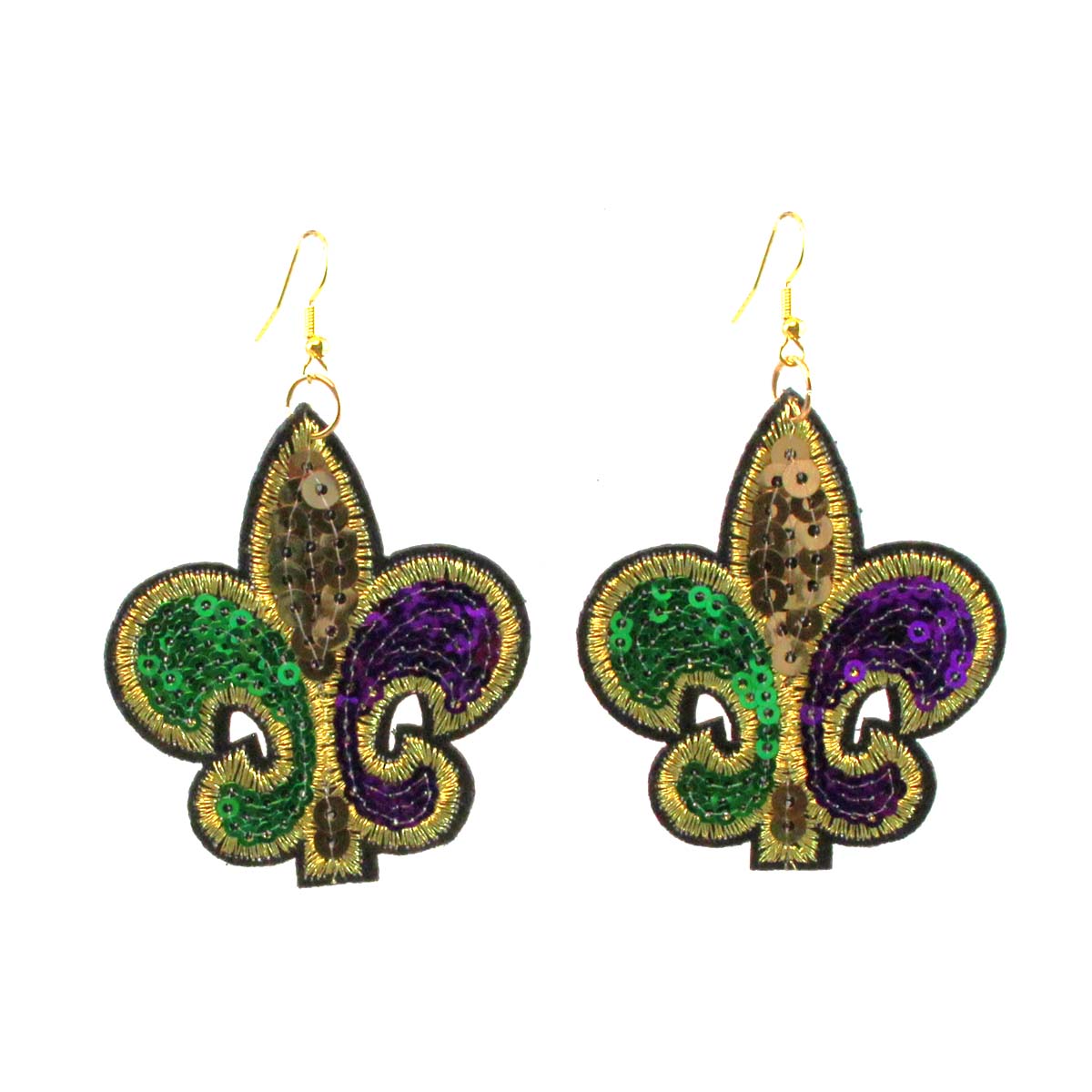 Fleur de Lis Sequin Earrings, Mardi Gras