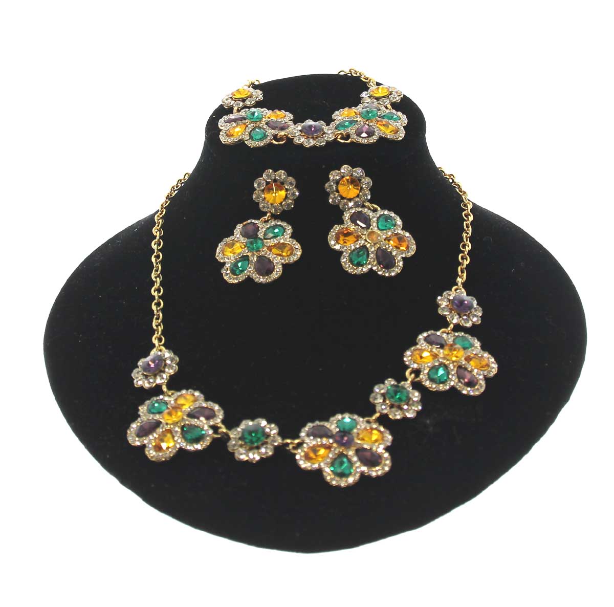 Mardi Gras Floral Gem Necklace, Earring, and Bracelet set