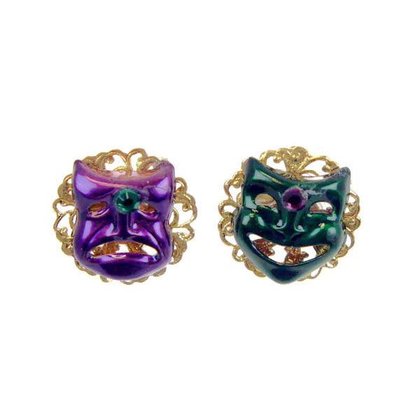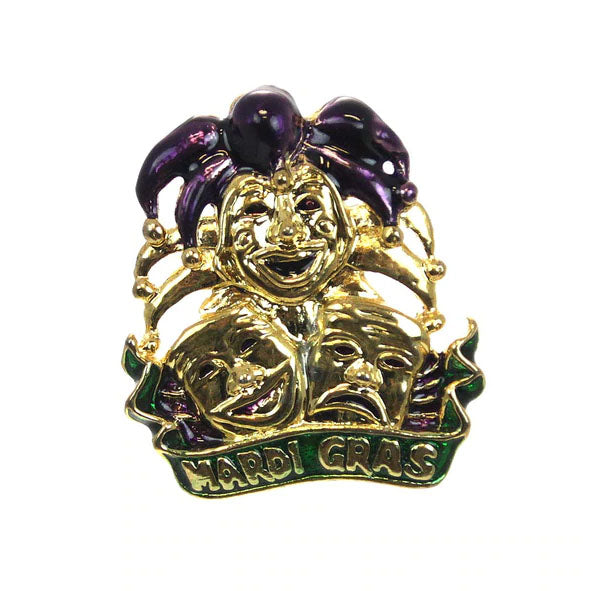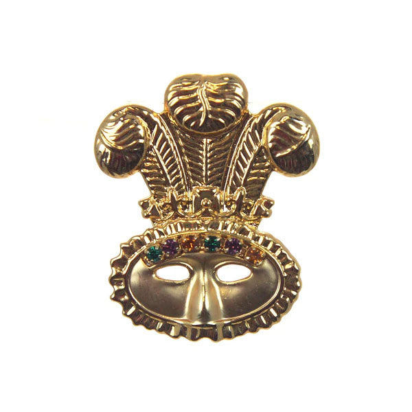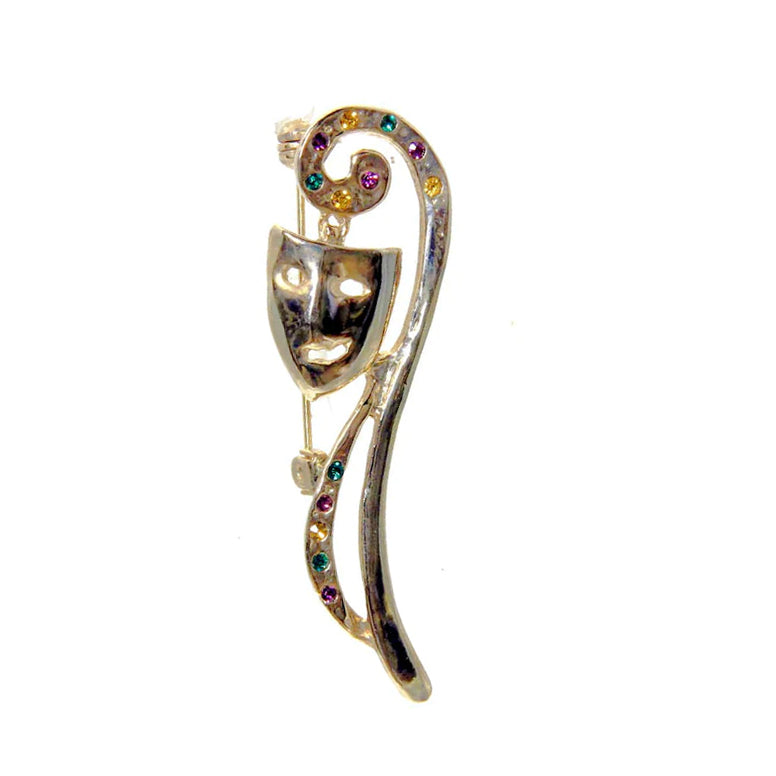 Comedy Mask Pin, Gold with Multicolor Crystals