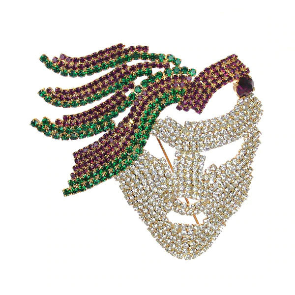 Mask Feather Pin Rhinestone