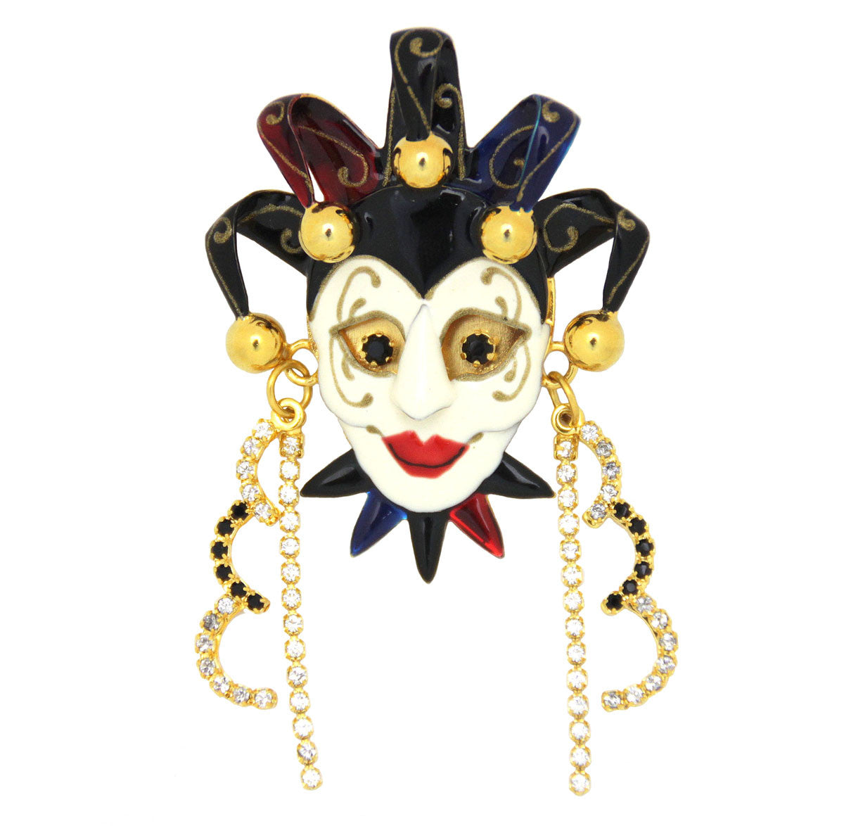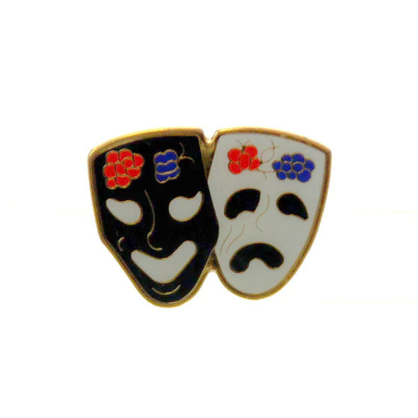 Comedy & Tragedy Mask Pin, Black & Cream