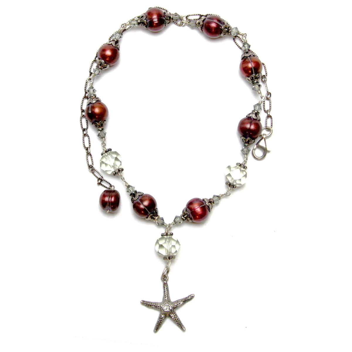 Starfish Necklace w/ Gemstone Quartz, Pearls