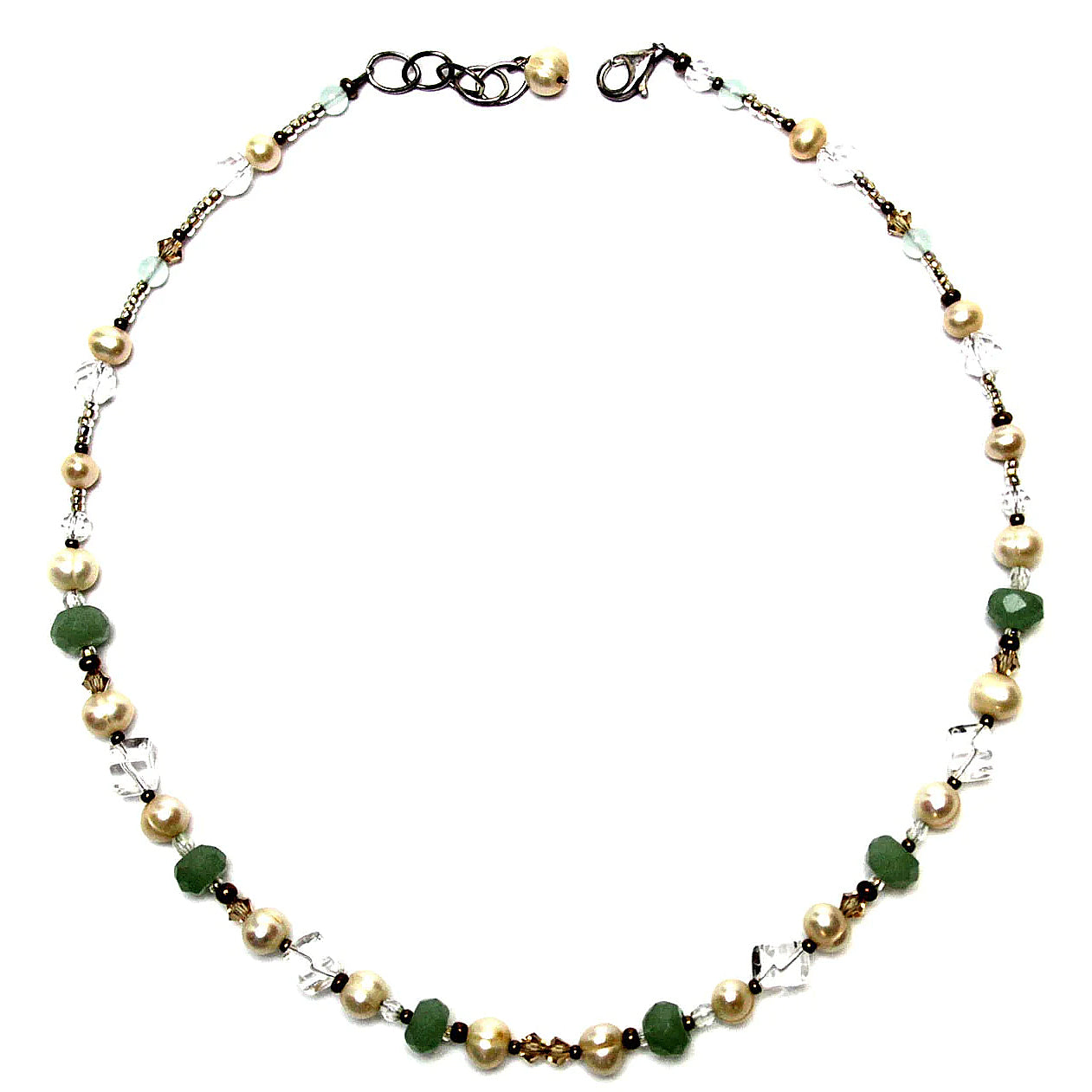 Necklace Gemstone Aventurine, Quartz, Pearls
