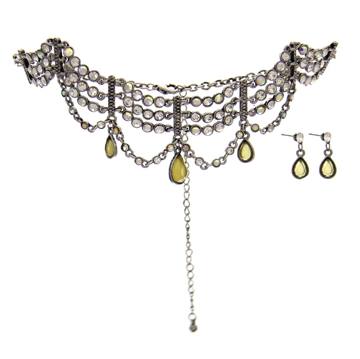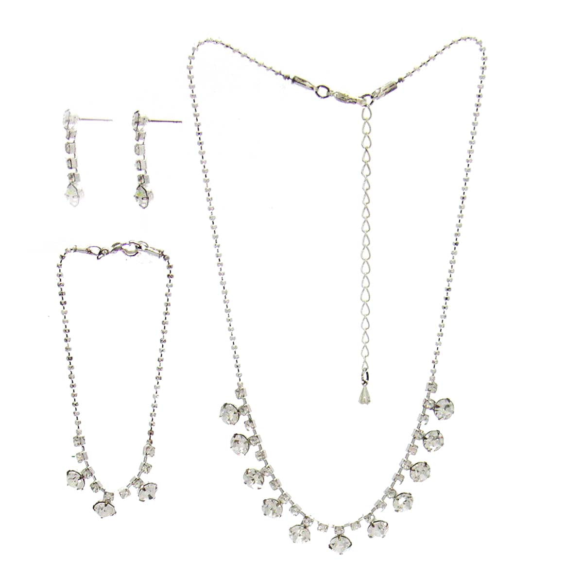 Rhinestone Necklace, Bracelet, & Earrings Jewelry Set