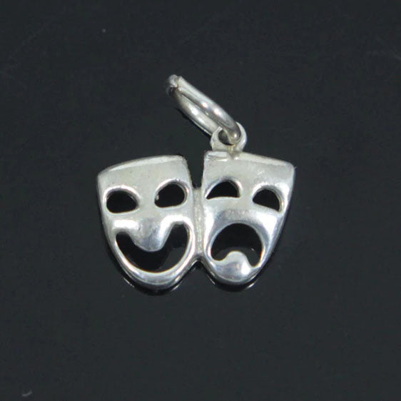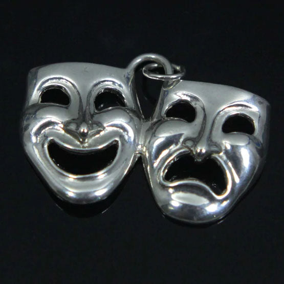 Comedy & Tragedy Masks Charm/Pendant, Sterling Silver