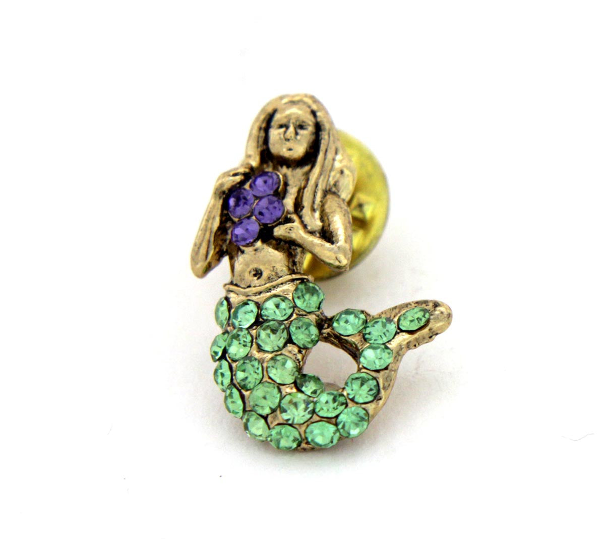 Mermaid Tac Pin, Gold Lavender & Peridot