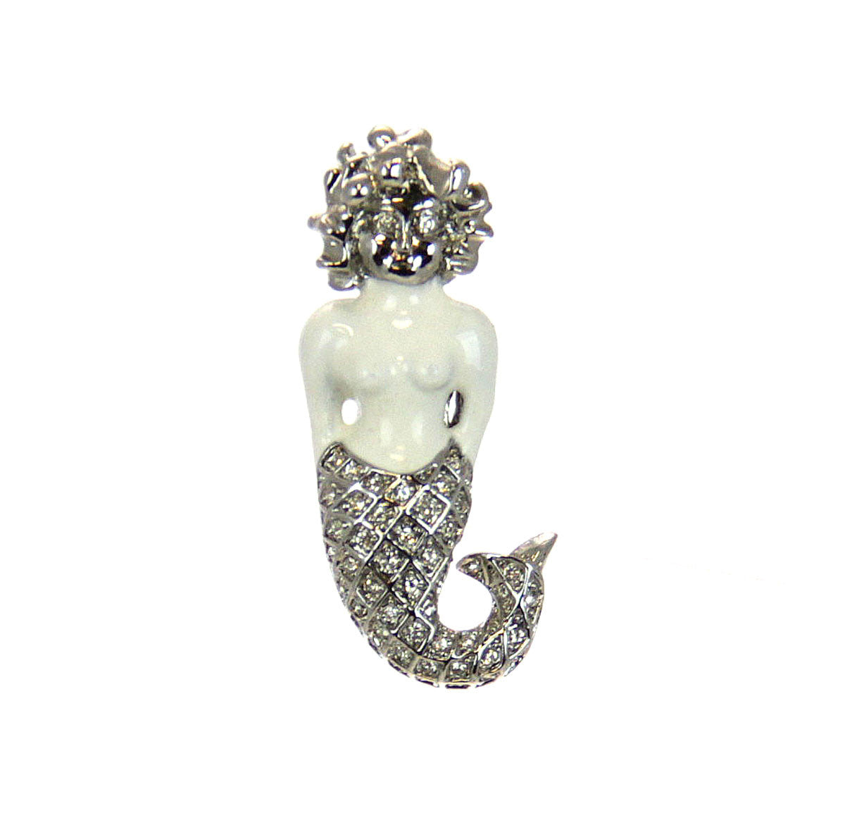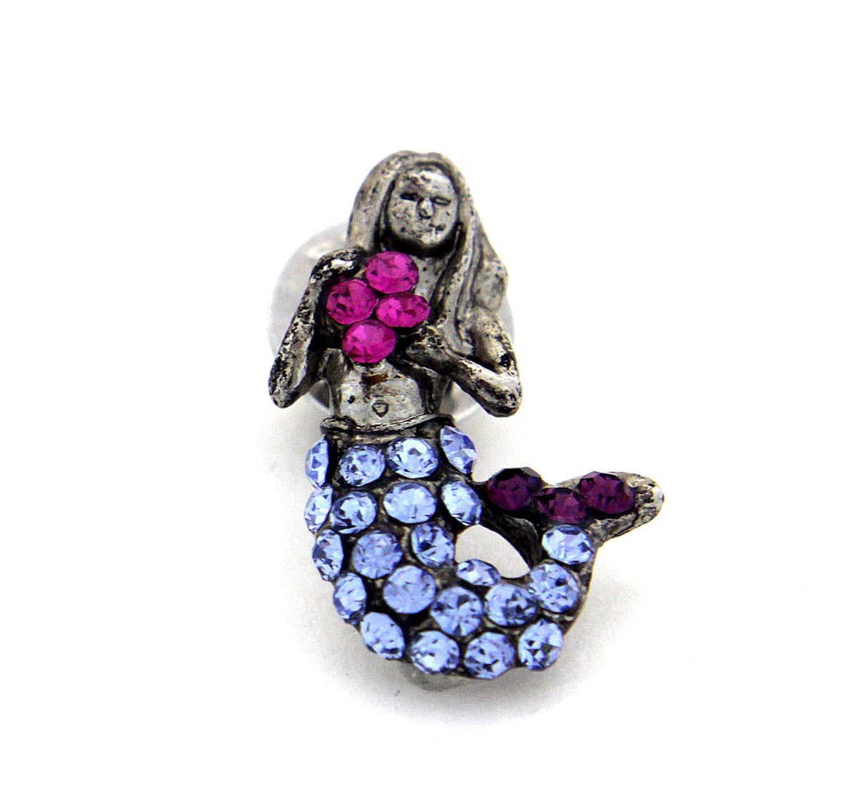 Mermaid Tac Pin, Silver w/ Lt. Sapphire & Rose
