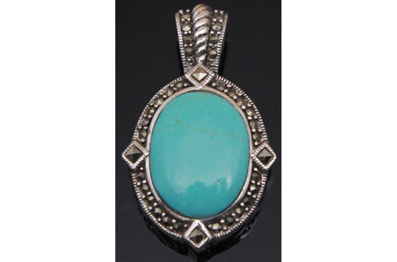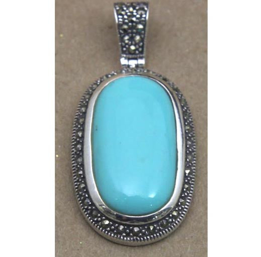 Turquoise Marcasite Pendant Sterling Silver