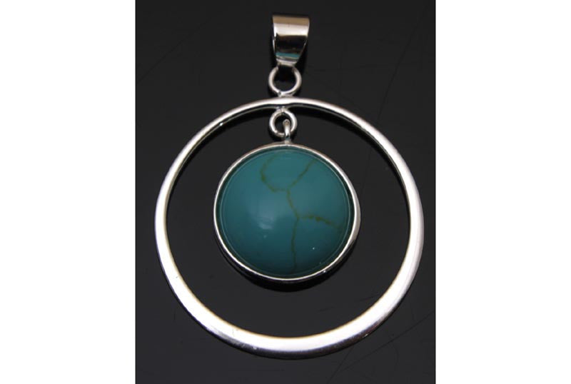 Turquoise Circle Sterling Silver Pendant