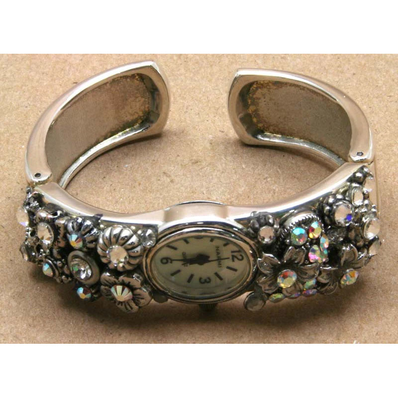 Watch Cuff with Crystals Silver