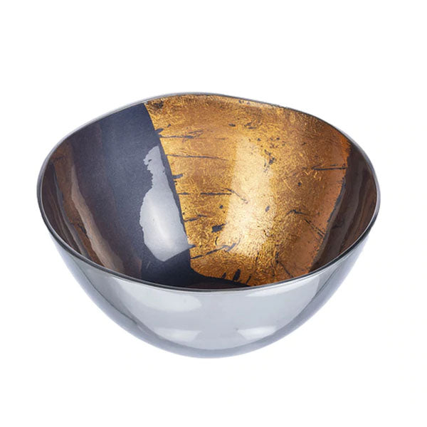 Indigo with Copper Leaf Brush Serving Bowl