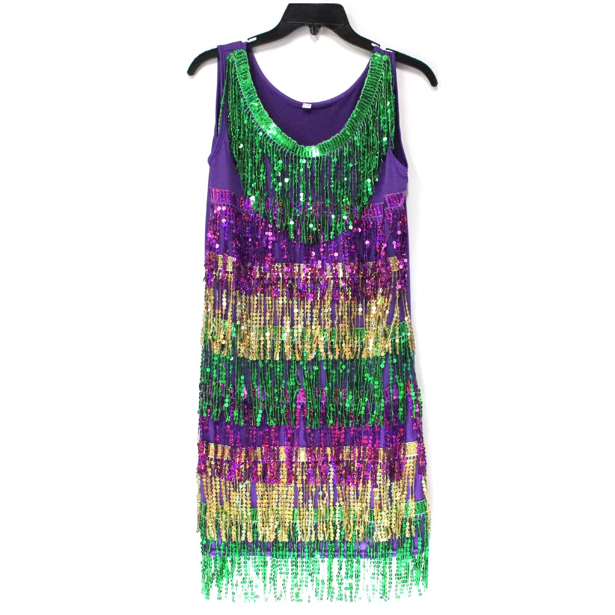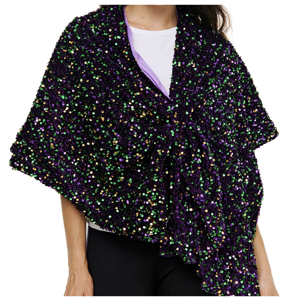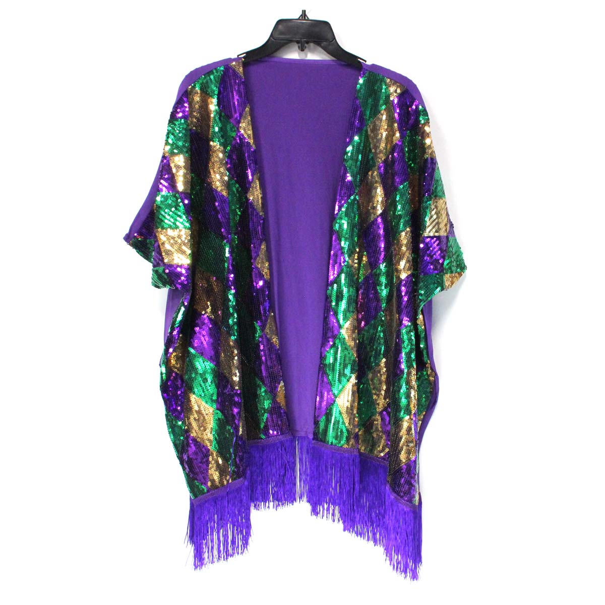 Mardi Gras Harlequin Sequin Wrap w Fringe
