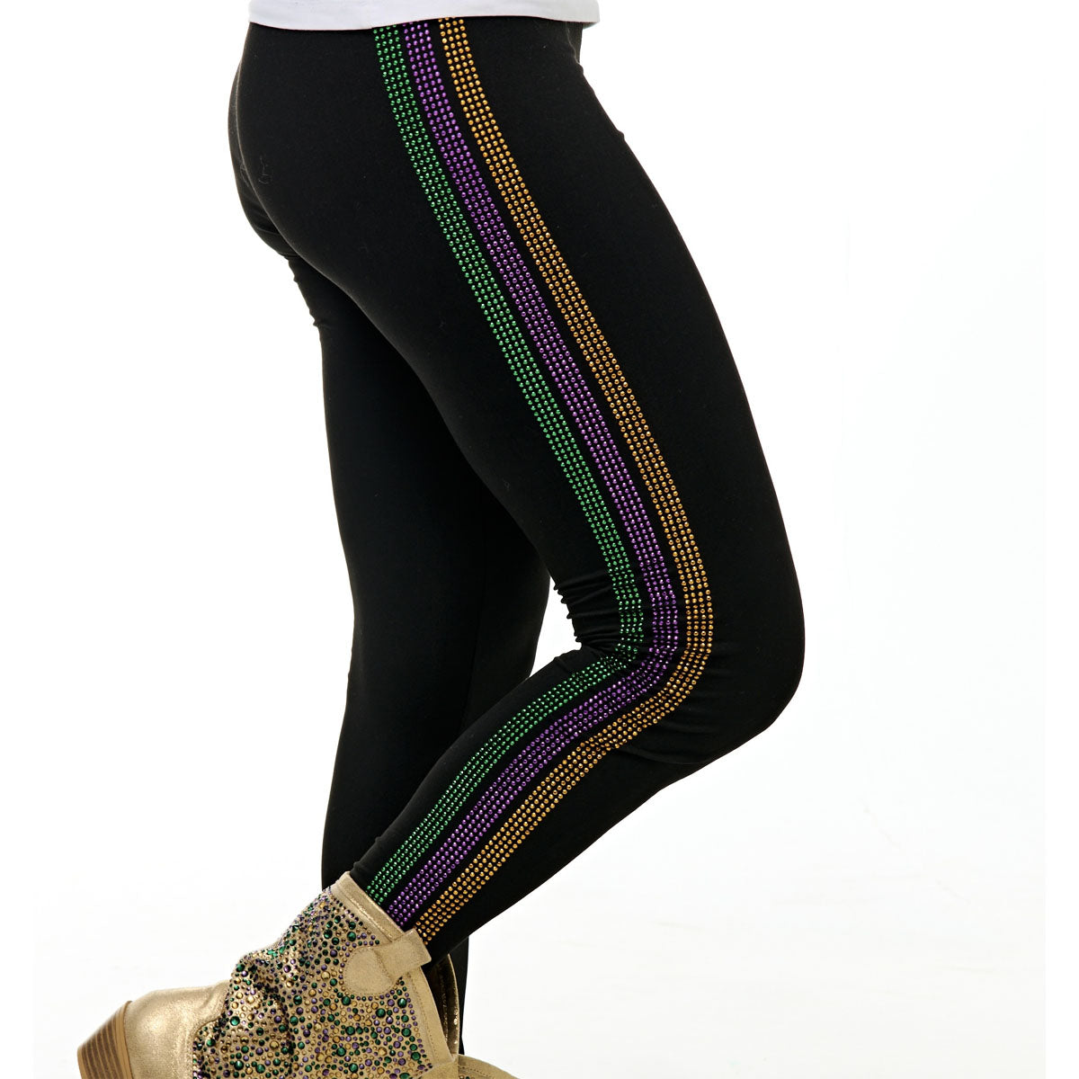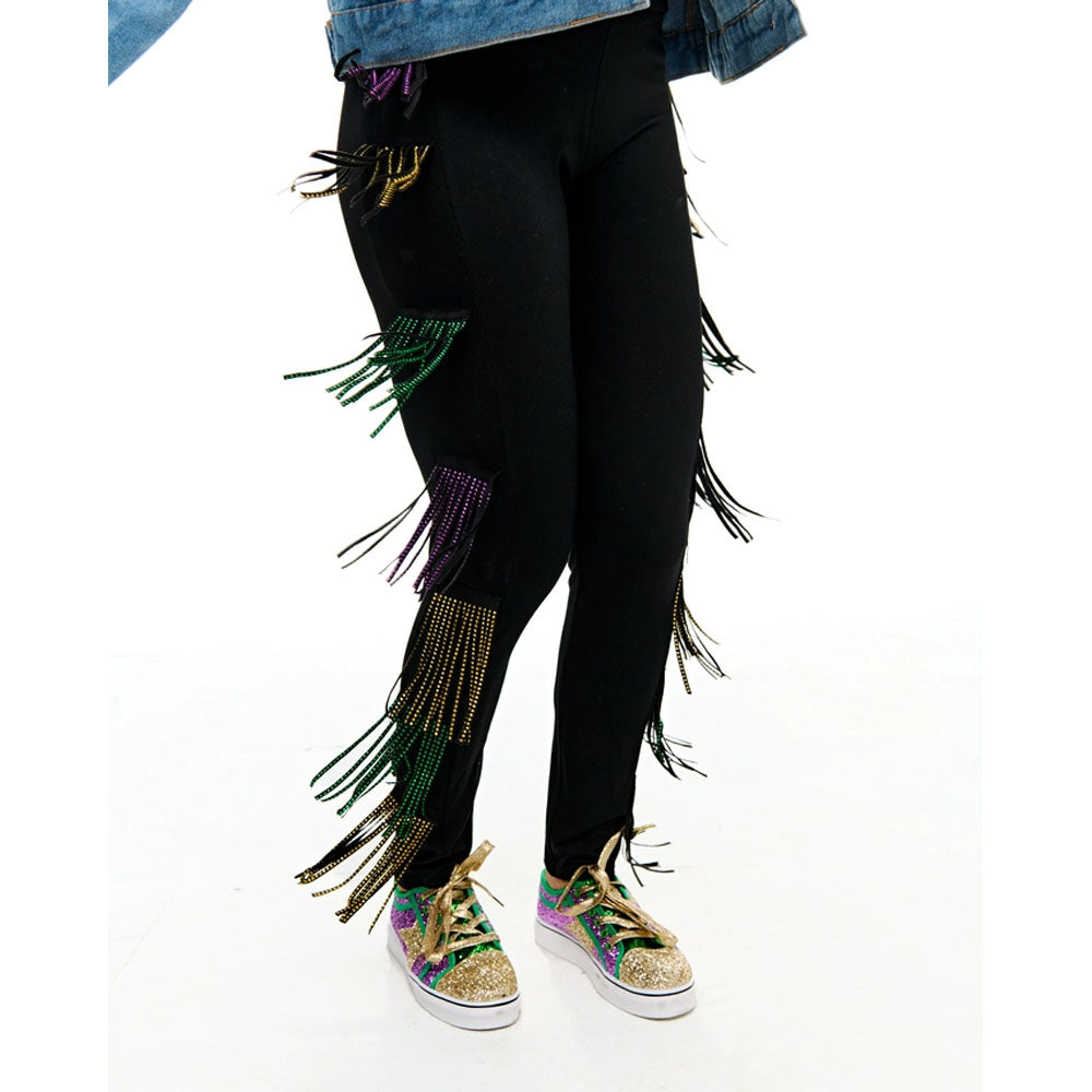 Mardi Gras Rhinestone Tassel Leggings Adult