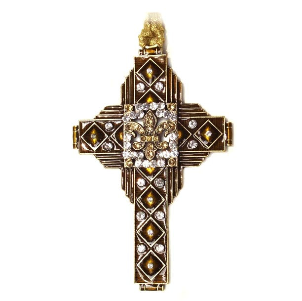 Cloisonne Fleur De Lis Art Deco Cross Gold