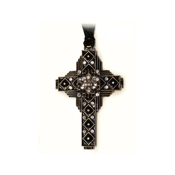 Cloisonne Fleur De Lis Art Deco Cross Black