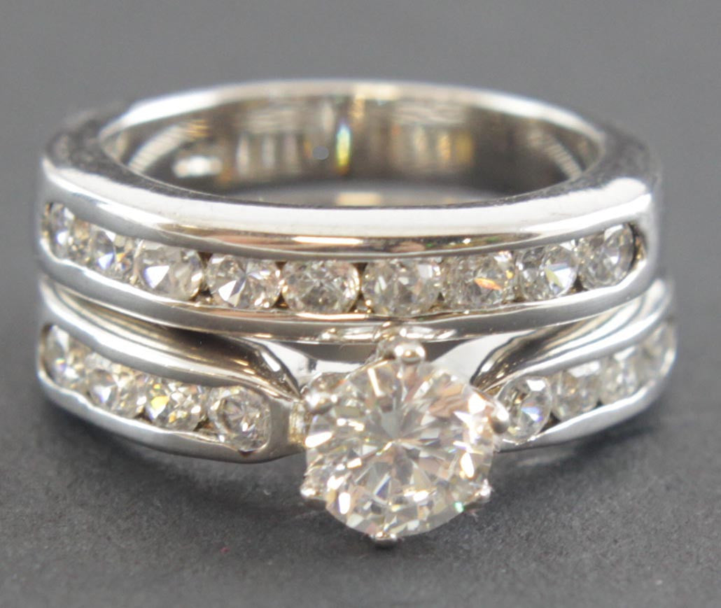 Sterling Silver Diamond Zirconia Ring Set Size 6