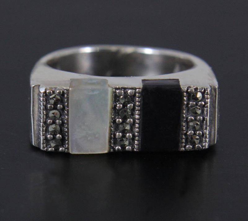 Sterling Silver Mother of Pearl & Onyx Ring Size 8