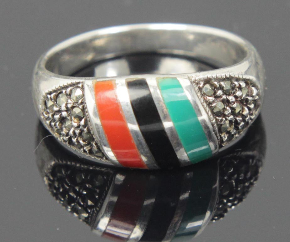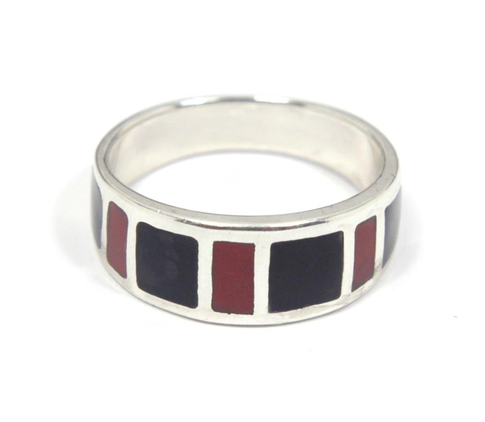 Sterling Silver Onyx & Coral Ring Size 8.5