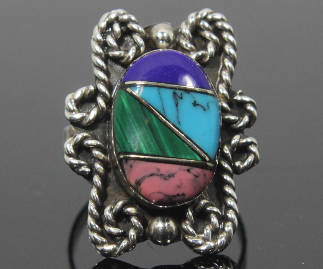 Sterling Silver Multi Color Cabochon Ring Size 8.5