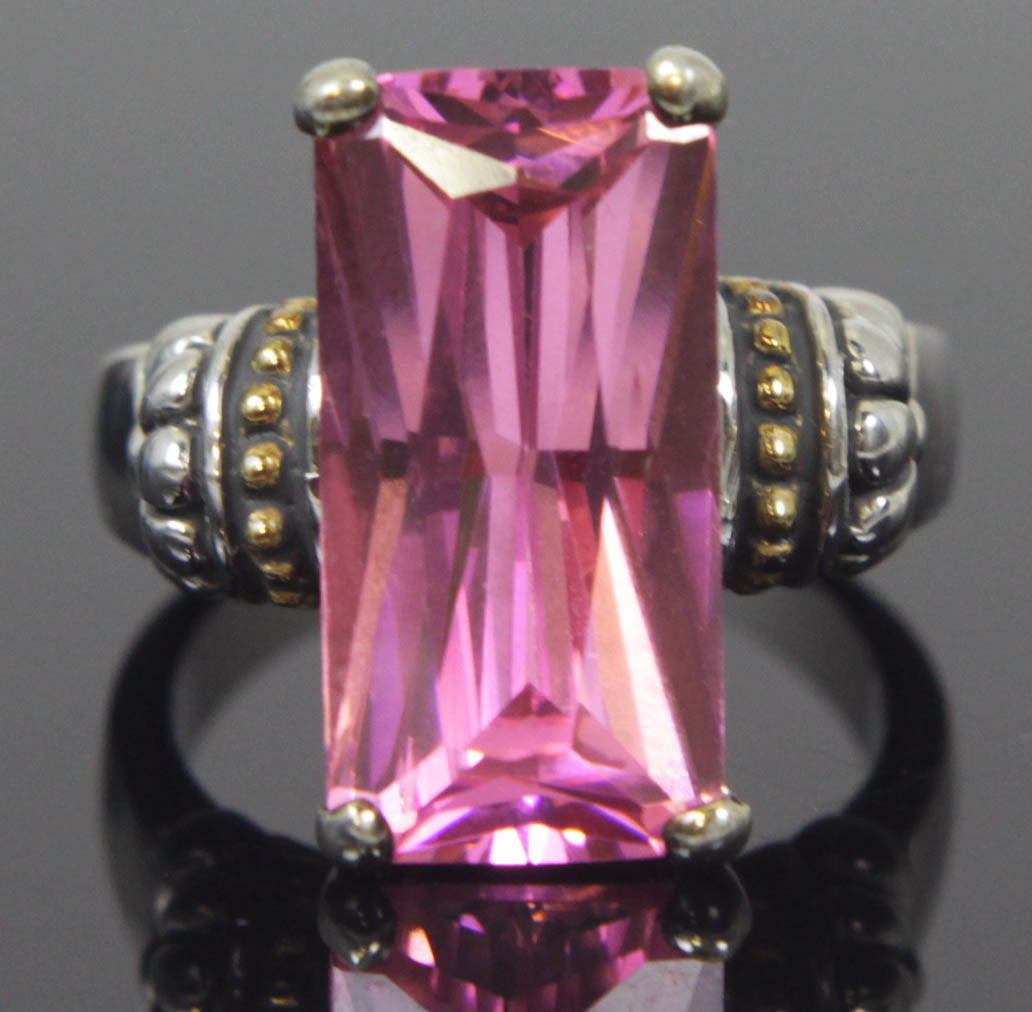 Sterling Silver Rose CZ Rectangle Size 8.5