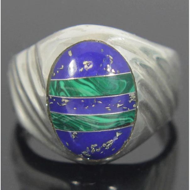 Sterling Silver Lazuli Malachite Ring Size 9.5