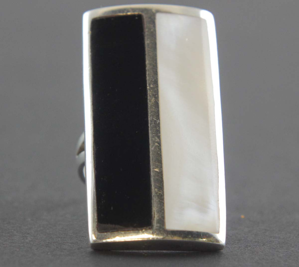 Sterling Silver Mother of Pearl & Onyx Ring Size 8