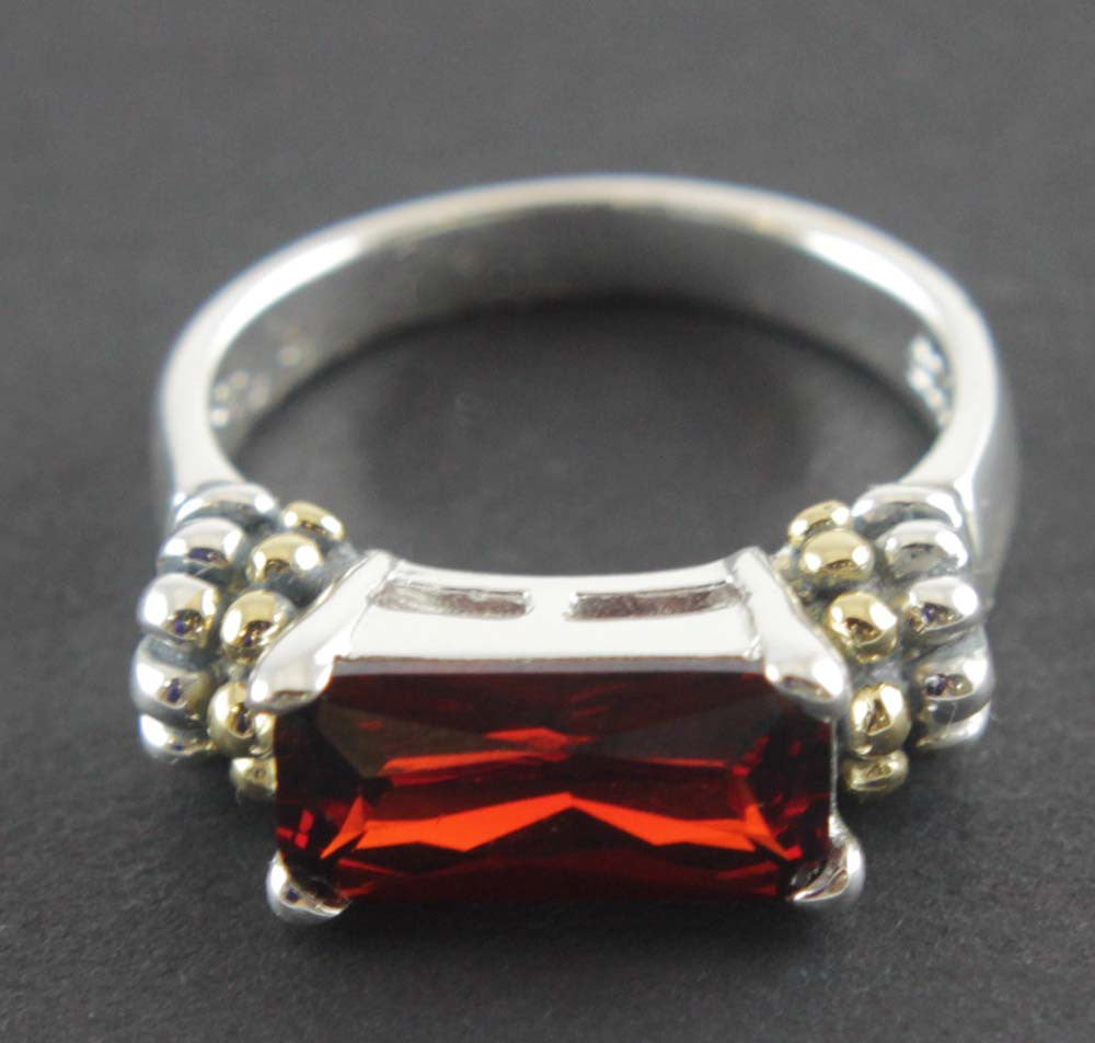 Sterling Silver Garnet Zirconia Ring Size 6