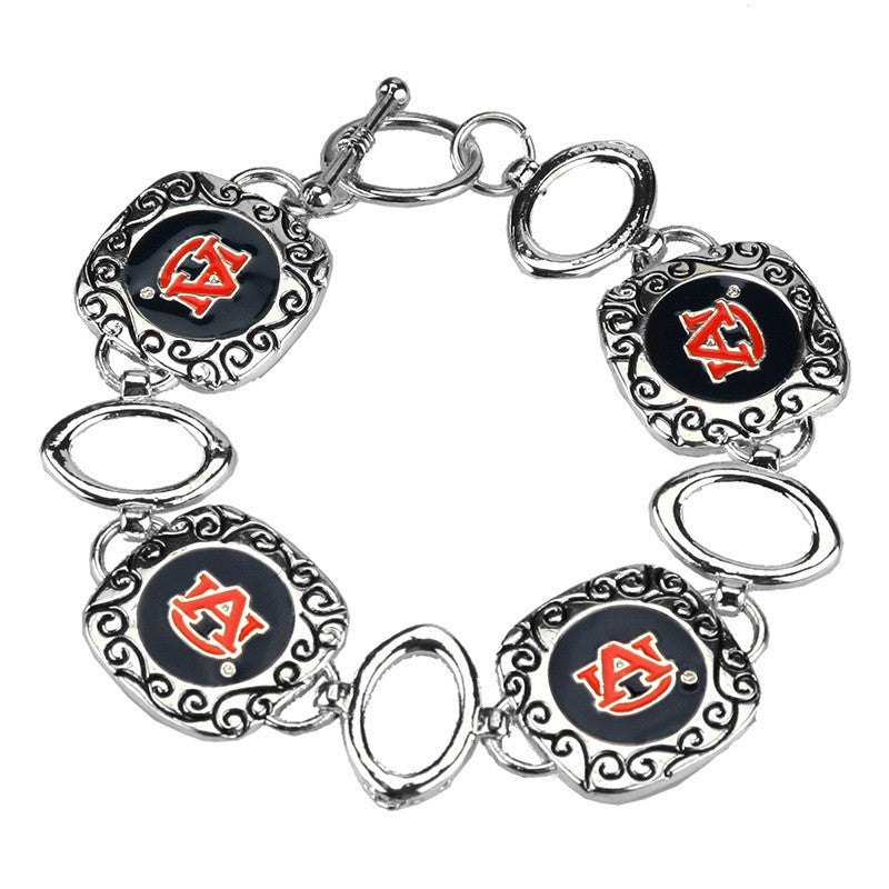 Auburn University Silver Link Bracelet w/charm